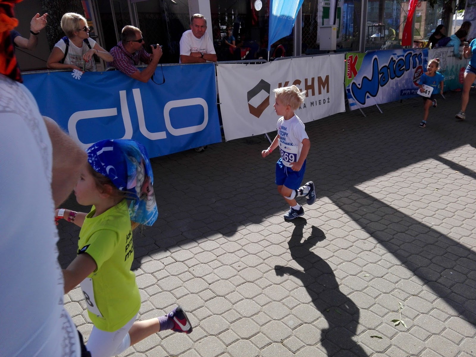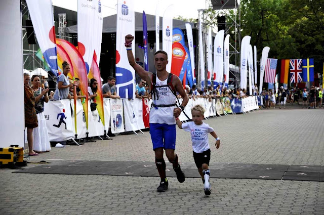 To co mnie cieszy, to ogólnie dobre samopoczucie w trakcie i po biegu, tym razem obyło się bez skurczy, kolek itp., a jedyne co przeszkadzało to słońce (szczególnie po 30km), które wysysało ze mnie energię i…stopy na ostatnim kilometrze. W roku ubiegłym, na metę, wbiegałem ze łzami wzruszenia gdy tylko zobaczyłem czekającego na mnie Bartka. W tym roku wzruszenie było, owszem, ale ostatnie kilkaset metrów biegu, po asfalcie i betonowej kostce, było torturą dla moich stóp, które piekły mnie tak bardzo, że łzy ciekły mi po policzkach.